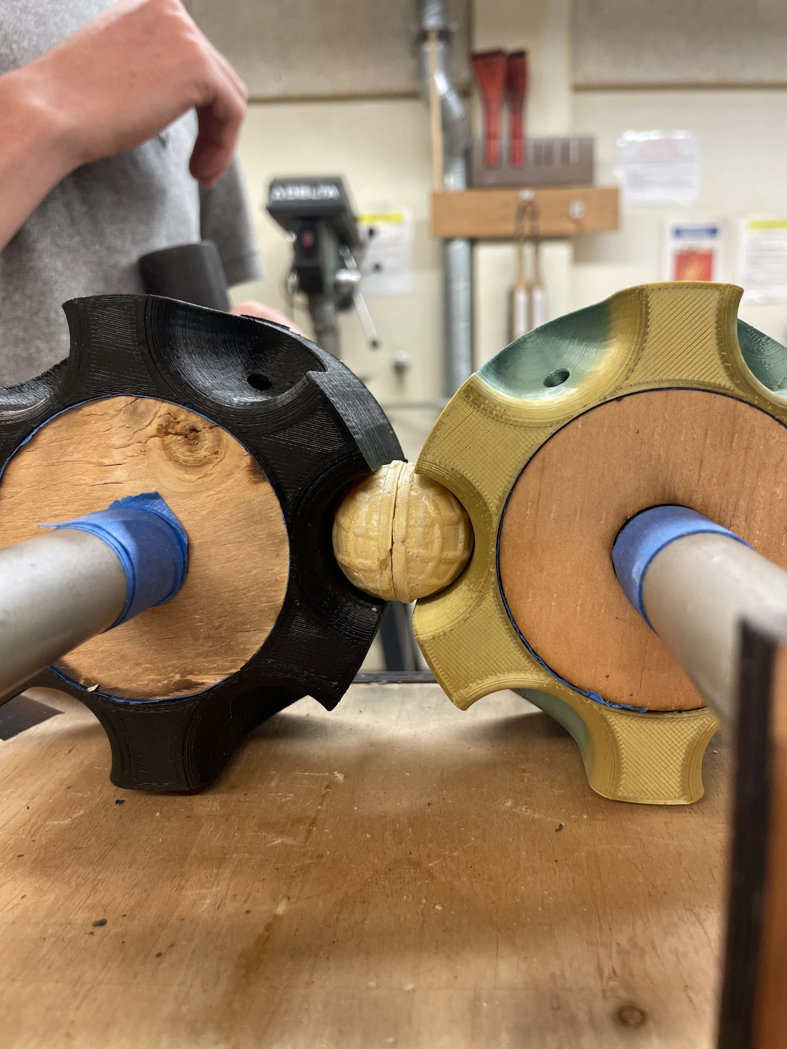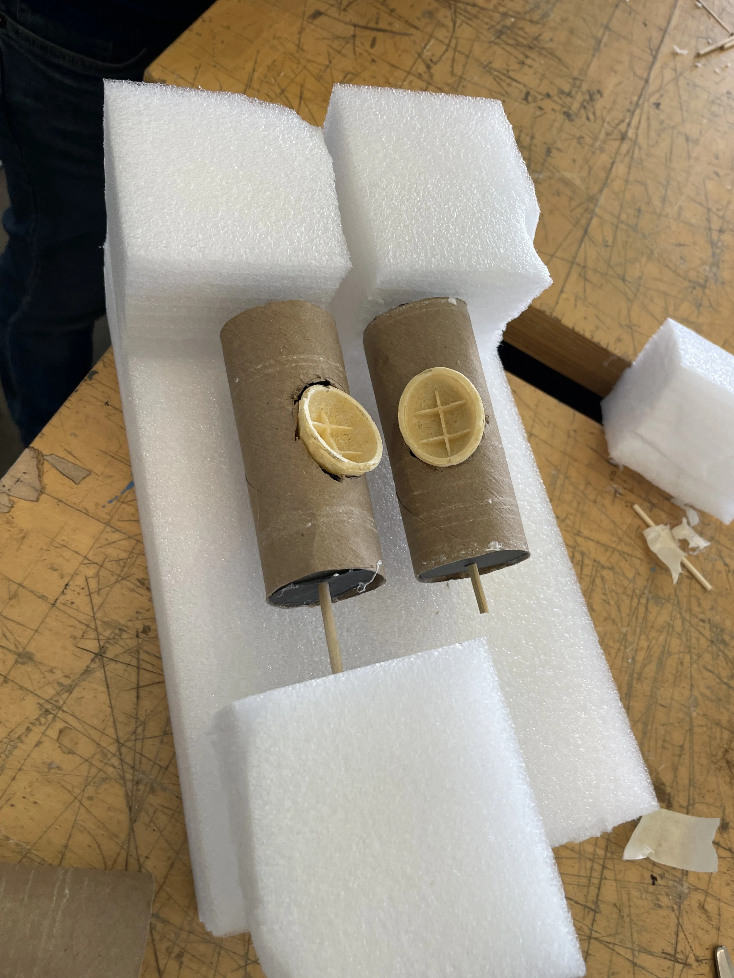 As senior engineering students at Cal Poly, we were approached by a sponsor trying to start his dream of a novelty icecream product consisting of soft serve in a walnut shaped cone-pod. He asked our team of four to design a machine to replace hand assembly of these ice-cream pods. The first phase was a lot of brainstorming and prototyping to figure out how we could manipulate the fragile shells without breaking them.