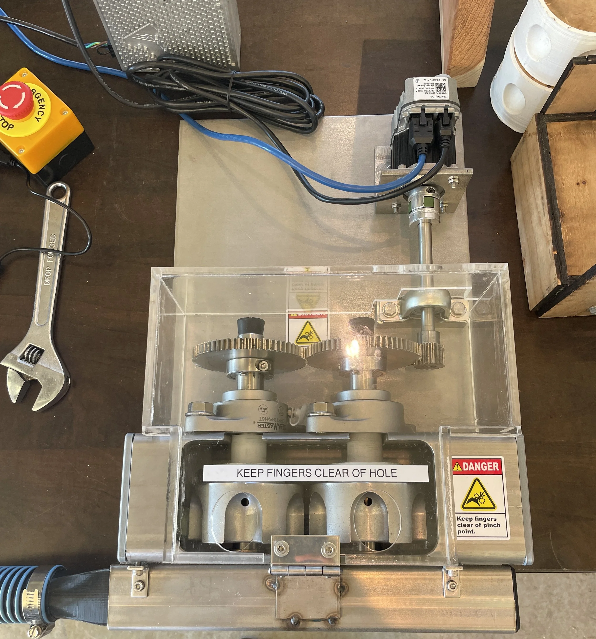 We selected a design with hollow shafts that could pull vacuum in rotating drums to pick up the shells. Taking advantage of Cal Poly’s agriculture program (which almost never interacts with engineering), we interviewed dairy scientists to learn about the requirements of an industrial machine interacting with icecream and selected stainless steel parts and dishwasher safe bearings, making anything that touched food removable. As a machine-shop technician I took the lead on CAD and manufacturing each part.